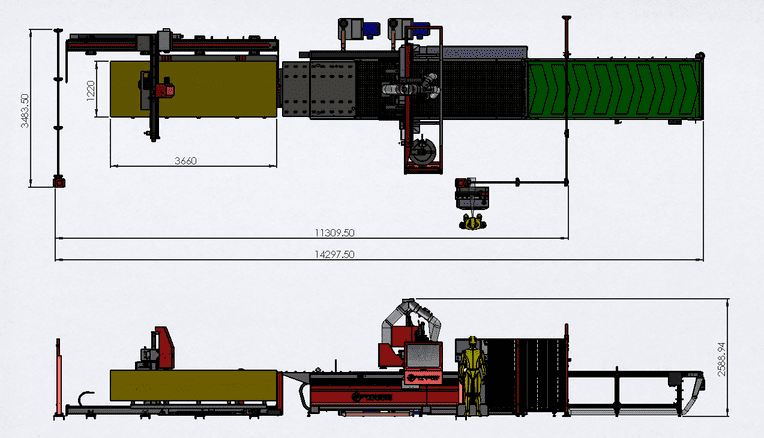 • Automatic Loading: The automatic scissor-lift table loads sheets of material onto the CNC Router which are then fed into the router for processing.