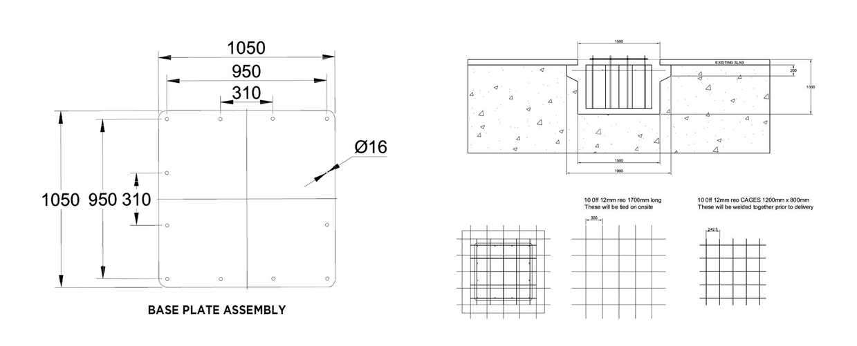 The JIB CRANE 360 is one of the most important elements in any workshop. It is designed to be bolted directly to the ground thanks to a large base plate. This base plate is anchored to the ground by bolts which are chemically set to a levelled concrete floor which must be at least 150mm in thickness.