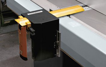 The quickness of the 2 movements of the fence (tilting and translation) can be done by using only one hand pressing a button, reducing the time for machine set up.